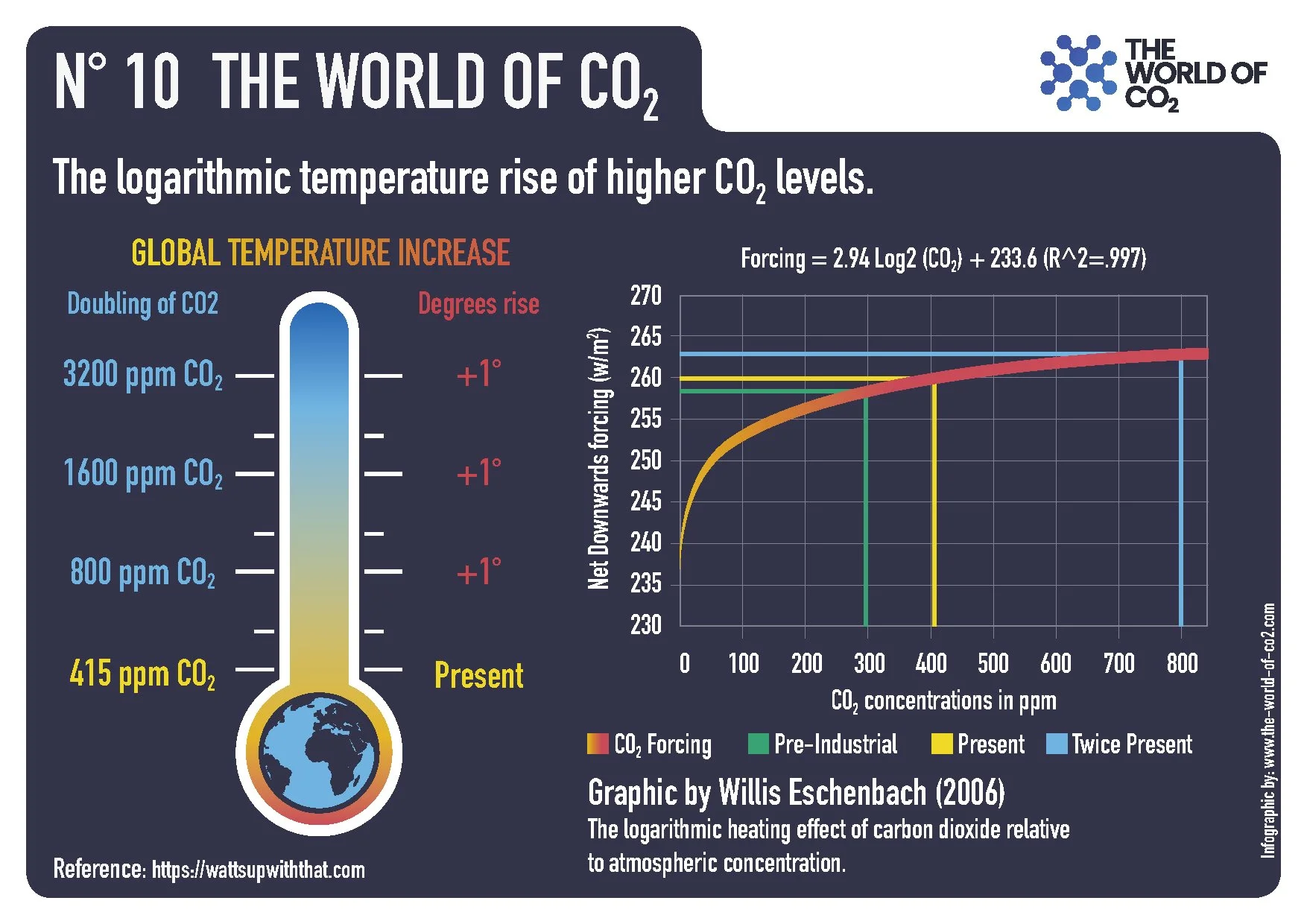 – N° 10 The logarithmic temperature rise of higher CO₂ levels.